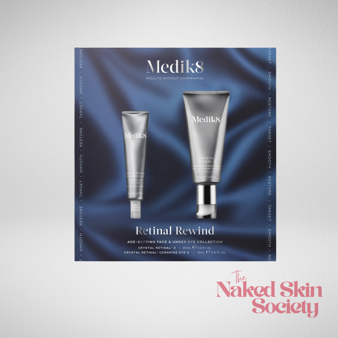 Target all visible signs of skin ageing with our vitamin A power pairing. While Crystal Retinal 3 face serum visibly firms, brightens and smooths your skin while you sleep, Crystal Retinal Ceramide Eye 3 targets the appearance of crow's feet, fine lines and puffiness. Unwrap and experience a more awakened eye area by morning.